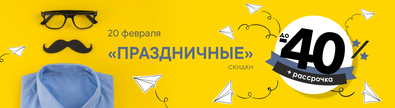 20 февраля вас ждут праздничные скидки с рассрочкой:- в отделе "Мужская и женская одежда" - 30%, на выделенный ассортимент -20%, -40%;- в отделе "Детский мир" - 20%; - в отделе "Обувь" - 20%, на выделенный ассортимент -10%;- в отделе "Ювелирные изделия и часы" до -50%- в отделе "Текстиль" - 20%, на...